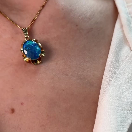A 9 carat gold and Opal triplet pendant, stone measuring 12x10mm. Note this is pendant only, chain sold separately.